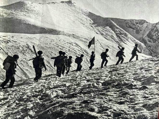 惡劣的施工環(huán)境,并沒有阻止我們向大山心臟挺進(jìn)的腳步,上導(dǎo)道坑貫通了,中導(dǎo)坑也以戰(zhàn)士們前無險(xiǎn)阻的排山倒海之勢(shì)被拿下。拱部和邊墻襯砌由14連向前推進(jìn)。我們連負(fù)責(zé)電纜槽和隧道底部1米多厚的混凝土施工。與14連戰(zhàn)士一樣,肩扛、兩人抬一只籮筐,從洞外運(yùn)砂石料、水泥,在現(xiàn)場(chǎng)鋪展開的兩塊鐵皮上用鐵鍬攪拌混凝土。我們的汗水流個(gè)沒完,工作服外表幾乎沒一處完好,棉花大多數(shù)裸露在外,戰(zhàn)友們身穿沾滿灰塵的棉衣走出隧道回營區(qū)的路上,如果只看上衣部分,以為是將綿羊皮裹在了身上。汗水伴著水泥灰的一張臉,不走近細(xì)看,根本認(rèn)不出是誰。