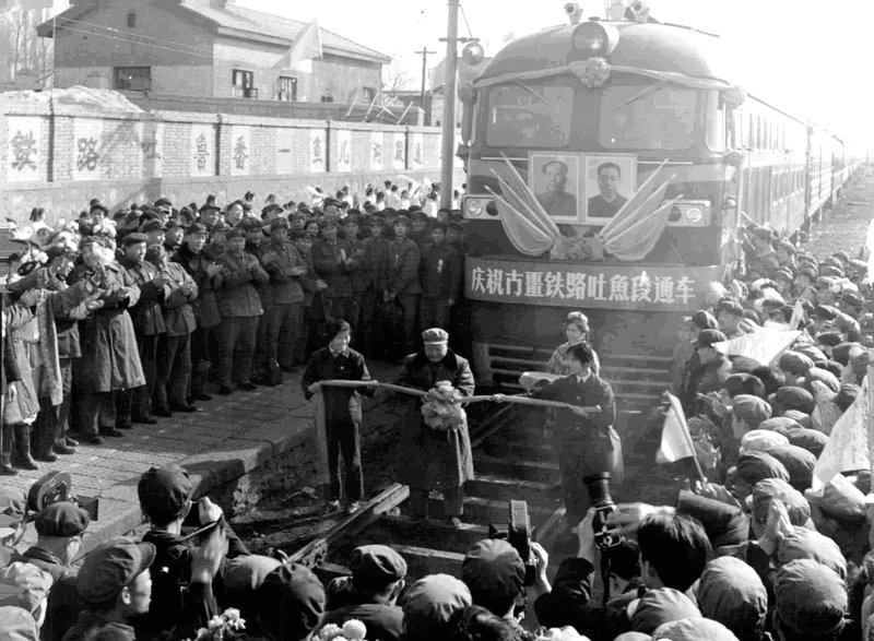 1979年8月,隧道全面完工,我們連轉(zhuǎn)入人工生產(chǎn)道砟階段。使用的工具是鐵叉、鐵錘、鐵鉤,要將堆成山的隧道棄渣加工成3—7厘米的路基專用砟,一個(gè)人每月也能敲打出20多立方,最多時(shí)達(dá)30多立方。待道砟基本滿足路基需要后,集中人力給路基上道砟、整道。在軌道上推著裝滿兩籮筐道砟的兩輪車,沿路鋪砟,一部分人輪起十鎬砸道、用鐵棍撬動(dòng)鋼軌。人多力氣大,沒多久便完成了三營管區(qū)隧道出口端路基上砟整道任務(wù)。1981年夏,11連和15連離開隧道出口,前往塔什店境內(nèi)的隧道進(jìn)口突擊完成10多公里線路的鋪砟和整道工程。這項(xiàng)任務(wù)畫圓后,遷至庫爾勒東站,人工開挖1米—6米深的暖氣、自來水和雨污水管溝,安裝管道,平整車站地面、澆筑混凝土,勞動(dòng)強(qiáng)度很大,每天劃分給班排的任務(wù)又落到人頭,鹽堿土,很硬,鐵鍬和十鎬開挖很費(fèi)勁,但無價(jià)錢可講,當(dāng)天的任務(wù)必須當(dāng)天完成。