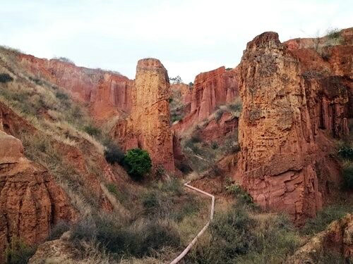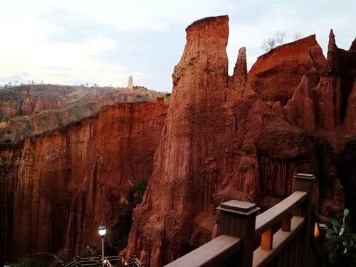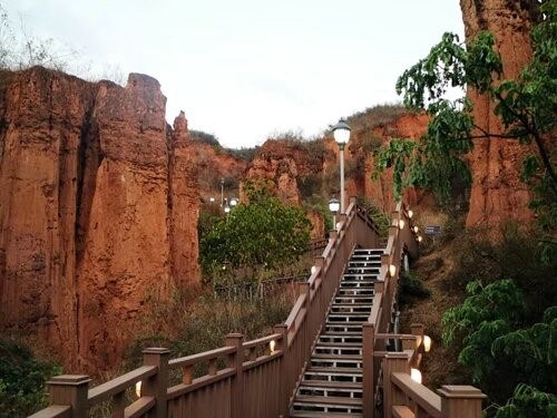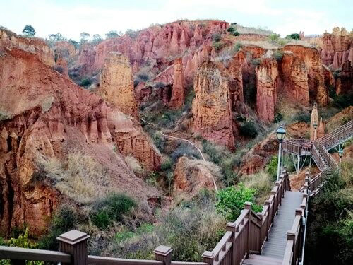 行在步道之間,猶如走進(jìn)了大自然雕塑的藝術(shù)魔宮,沿著步道在土林中漫游。穿越其間,仰頭可觀賞到“少女梳妝”、“嫦娥奔月”、“八仙過海”、“仙女下凡”、“戰(zhàn)馬騰空”、“雙獅望月”、“雄鷹展翅”等等奇異的造型,如同闖進(jìn)了神奇莫測的仙境。