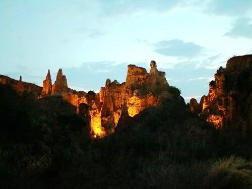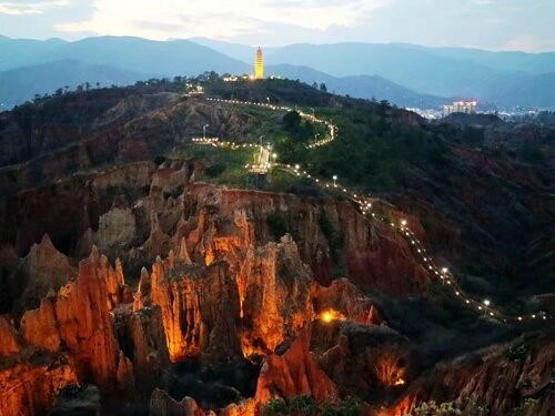 土林是一種獨特的流水侵蝕地貌,是水土流失現(xiàn)象造成的“美麗錯誤”。她的景觀會在不同季節(jié)、不同時間、不同氣候、不同角度有不同的韻味。陽光下的土林造型硬朗、醒目;雨霧中的土林若明若暗,朦朧含蓄;冬季的土林溫暖如春,夏季的土林炎熱酷暑。而且由于土林穩(wěn)定性差,易于流失,所以有些土柱今年似雞,明年似狗,充滿了變幻的美。土林是上天賜給南澗的一個寶貝,千百年來,她一直在南澗縣城附近期待著人們?nèi)バ蕾p。