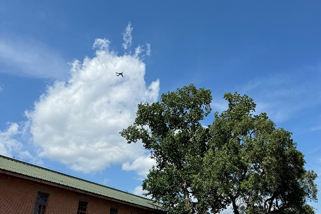站在遺址的石子路上,一架飛機(jī)正劃破湛藍(lán)的天際,機(jī)翼拖曳的白色尾跡與遠(yuǎn)處林立的現(xiàn)代化樓宇形影成景,此刻和平的輪廓變得如此清晰而具體。這穿梭云端的航跡,這燈火璀璨的都市,都是對(duì)那段黑暗歷史最有力的反駁。