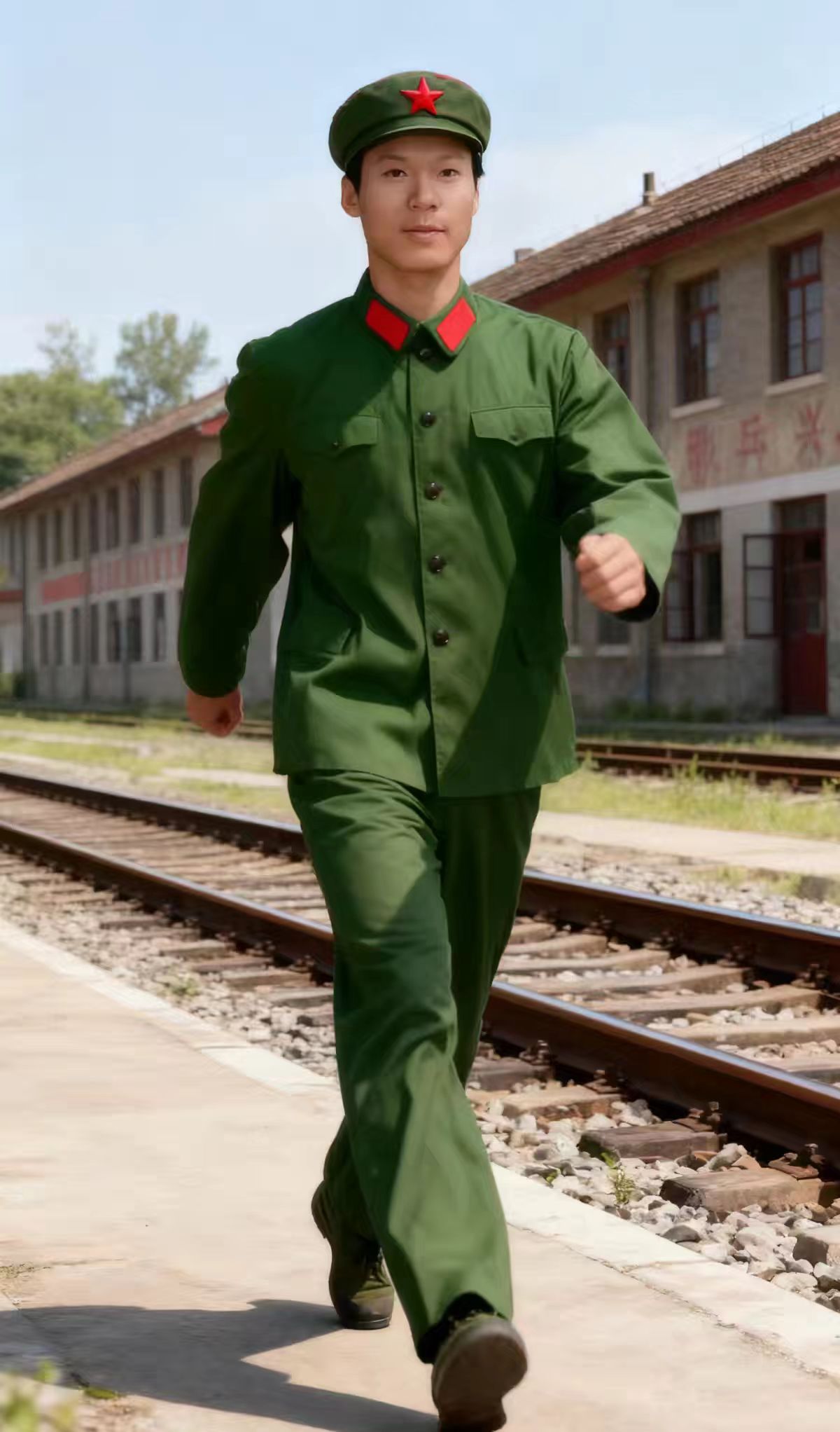 晨霧輕纏營門柳,紅星斜照少年頭。